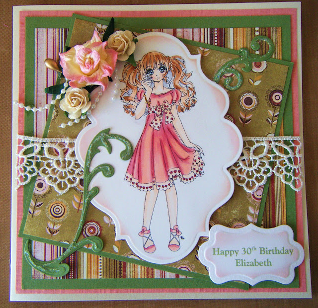 For those who haven't seen the article in the magazine Kay coloured the images using copics (any alcohol pen) and used Distress Inks for the background.